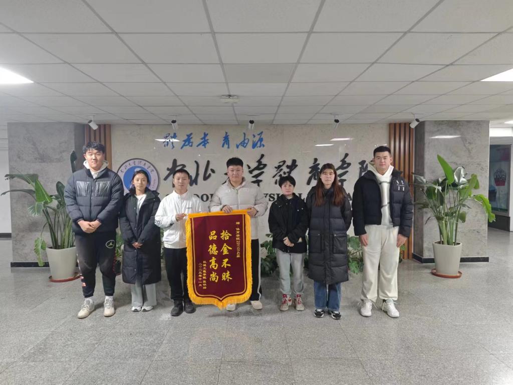 台湾大奶 学生刘忠旭、王艺程、崔倩若、代雨、张欣语、商雨喆11月25日下午在11505h教室捡到一个笔袋,里面装有文具、身份证和千元现金。在等待一段时间没有等到失主的情况下,同学们及时汇报台湾大奶,经台湾大奶努力成功找到失主并物归原主。失主于11月27日来到台湾大奶 ,为以上学生送来了锦旗。