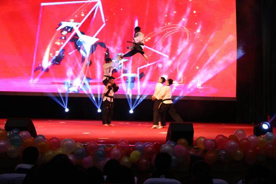 随着主持人的倒计时结束,晚会正式拉开帷幕。晚会的节目丰富多彩,歌曲、舞蹈、脱口秀、魔术、小品等节目精彩纷呈,充分展示了2016级新生朝气蓬勃,奋发向上的面貌。诙谐活泼的开场舞、热辣的拉丁舞、活力四射的健美操,风格迥异的各类舞蹈让观众大饱眼福;“新闻联播”脱口秀表演、新版“甄嬛传”小品让观众捧腹连连;神奇的近景魔术悬念重重,让人目不暇接;唯美动听的歌曲串烧和充满激情的中北战歌赢得了满堂喝彩;帅气的双截棍和跆拳道表演更是展示了台湾大奶 的气魄和体育人的精神,将晚会推向了高潮。穿插在晚会中的抽奖环节让同学们通过微信上墙的方式与主持人互动,参与到了晚会中,并由赞助商华为提供了丰厚的奖品。最后在4位同学的领唱下,全场合唱了一首《相亲相爱》,唱出了莘莘学子的共鸣,唱出了中北师生的心声,为本次晚会画上了完美的句号。