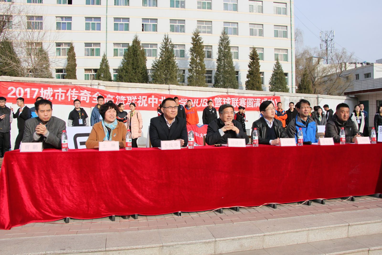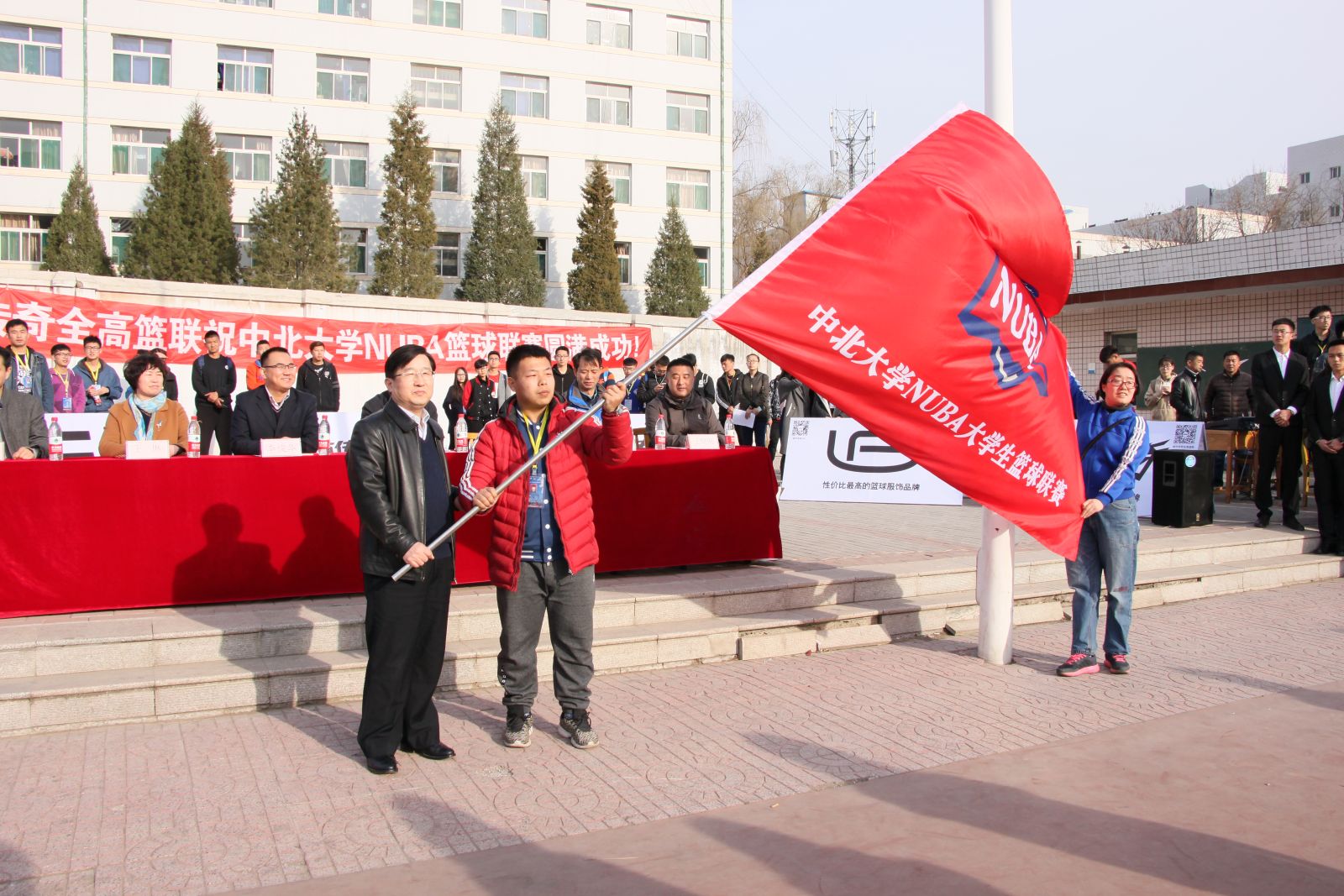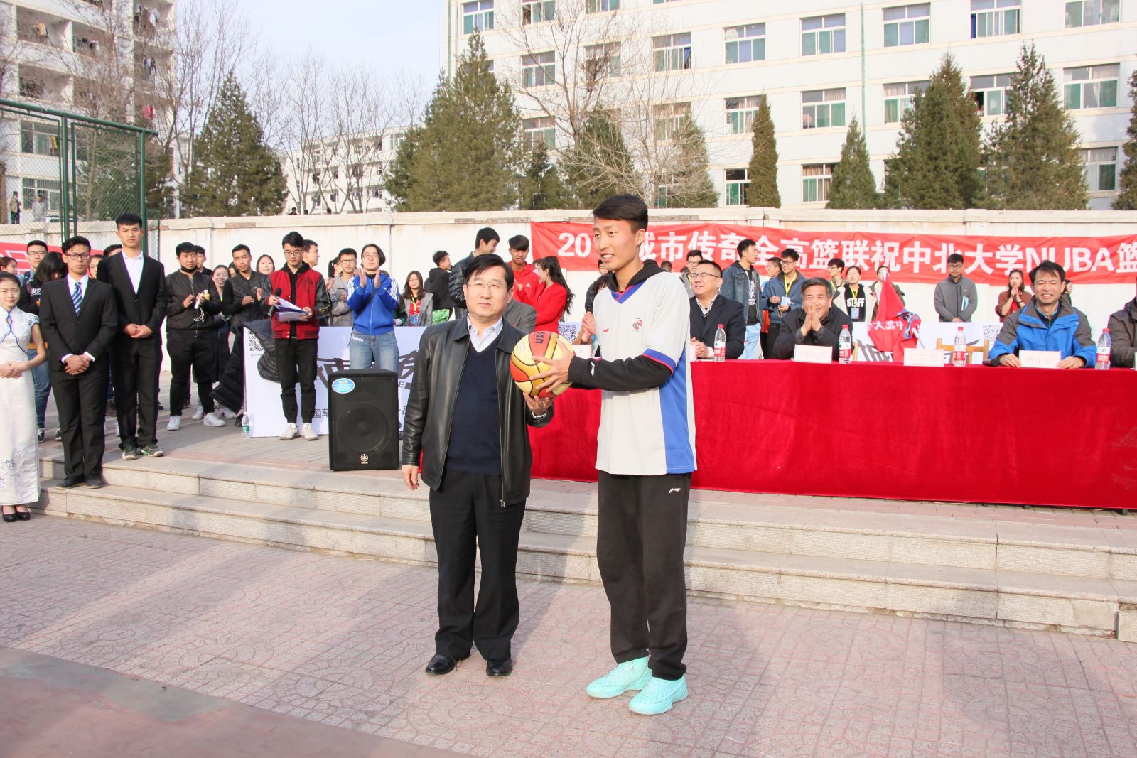 党总支书记王琳、校团委副书记李俊华以及相关领导参加了开幕式活动。曾建潮副校长为联赛做了精彩讲话并为联赛跳球,打响了比赛第一声哨声。白培康副校长为NUBA联赛主席进行了授旗和授球仪式。