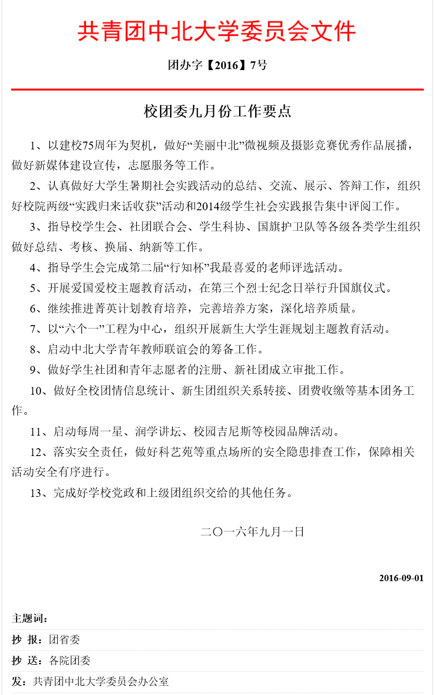 校团委九月份工作要点