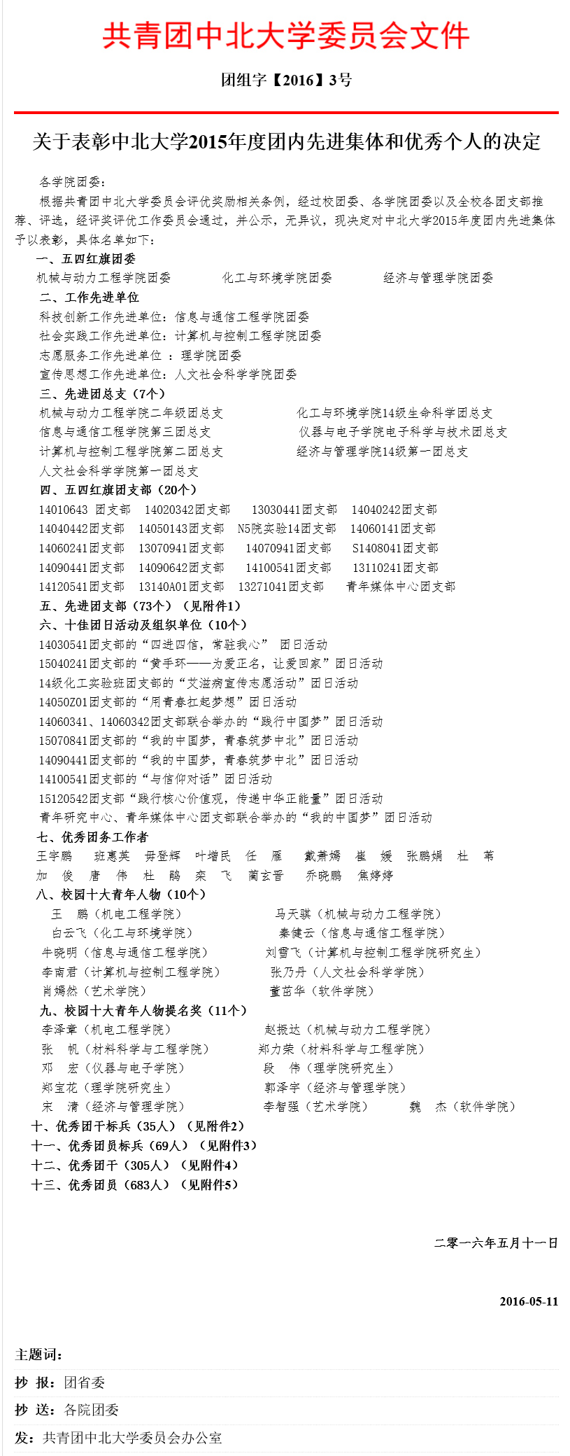 关于表彰台湾大奶 2015年度团内先进集体和优秀个人的决定