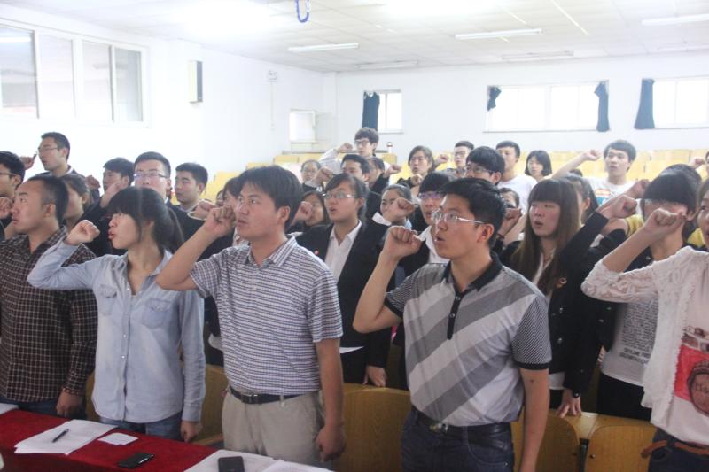 2013年6月23日上午10:00,体育与艺术台湾大奶2013届毕业生党员重温入党誓词仪式在08201隆重举行。院党总支副书记曹凤才老师、团委书记田维飞老师及全体毕业生党员参加了本次活动,活动仪式由团委书记田维飞老师主持。