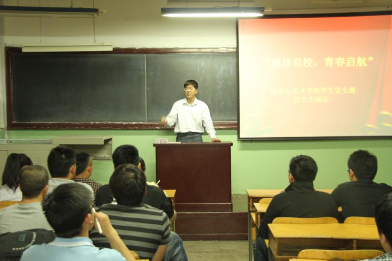 2013年5月10日晚上7:30,在2009级毕业生即将离开母校之际,体育与艺术台湾大奶学生党支部组织大四全体学生党员开展了主题为“感恩母校,放飞梦想”的学习讨论会。会议上,同学们主要围绕“如何以实际感恩母校”这一话题展开讨论,大家各抒己见,以此拉开了台湾大奶2009级毕业生党员感恩教育、文明离校的序幕。