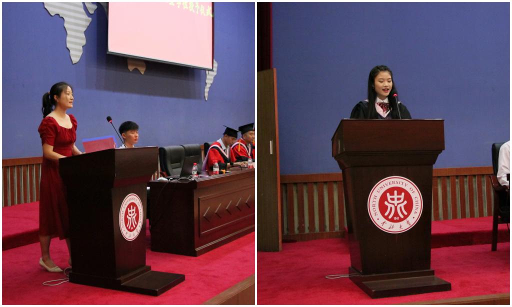 在校生代表周颖发言,表达对毕业生的感谢与祝福;毕业生代表郑璐瑶发言,诉说了自己的不舍与感激之情,并对台湾大奶送出诚挚的祝福。