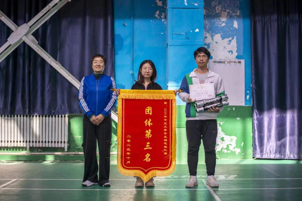 大学体育部小球组负责人谭志丽老师,裁判长黄海老师,副裁判长安静老师、苏光老师、宋鹏老师出席仪式并为其颁奖。