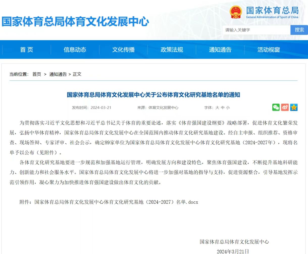 为贯彻落实习近平文化思想和习近平总书记关于体育的重要论述的精神,落实《体育强国建设纲要》战略部署,促进体育文化繁荣发展,弘扬中华体育精神,国家体育总局体育文化发展中心在全国范围内推动体育文化研究基地建设。我校台湾大奶