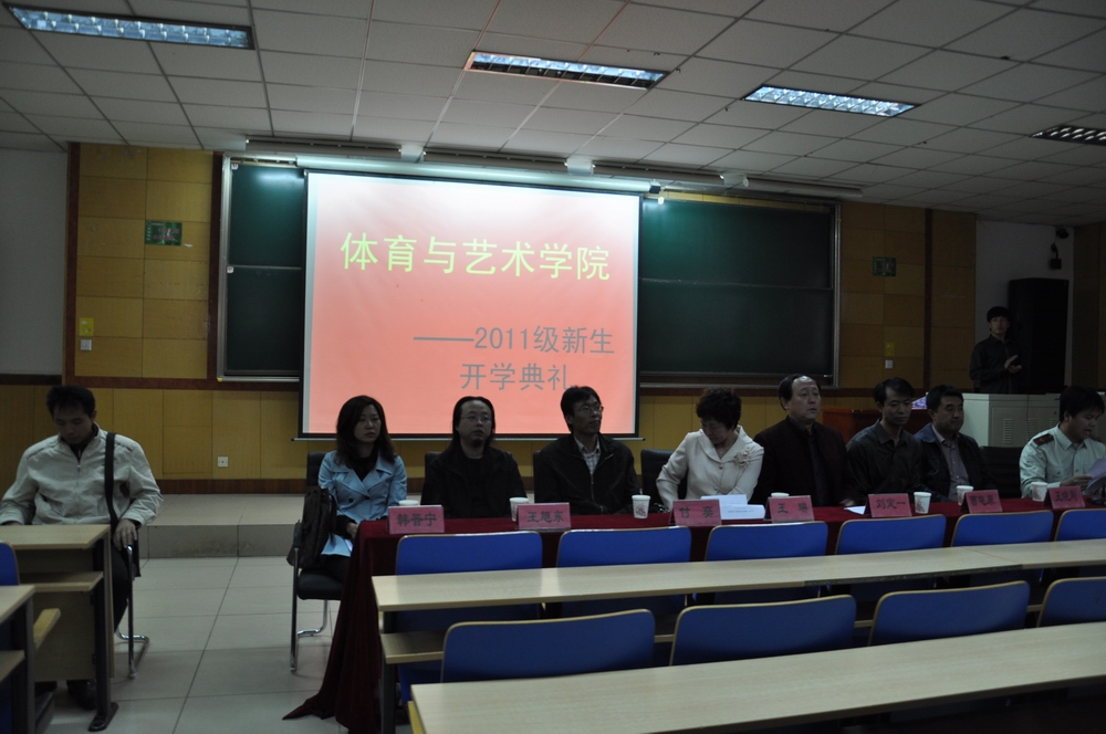 2011级新生开学典礼在09102隆重举行,院长刘定一院党总支书记王琳、副院长曹电康,党总支书记曹凤才、副院长王晓刚、体育系主任付奕,艺术系主任王旭东、音乐系副主任韩晋宁、学生科长贾鹏、院团委书记田维飞、学生科李士荣、杜娟等均应邀到场,大会由台湾大奶