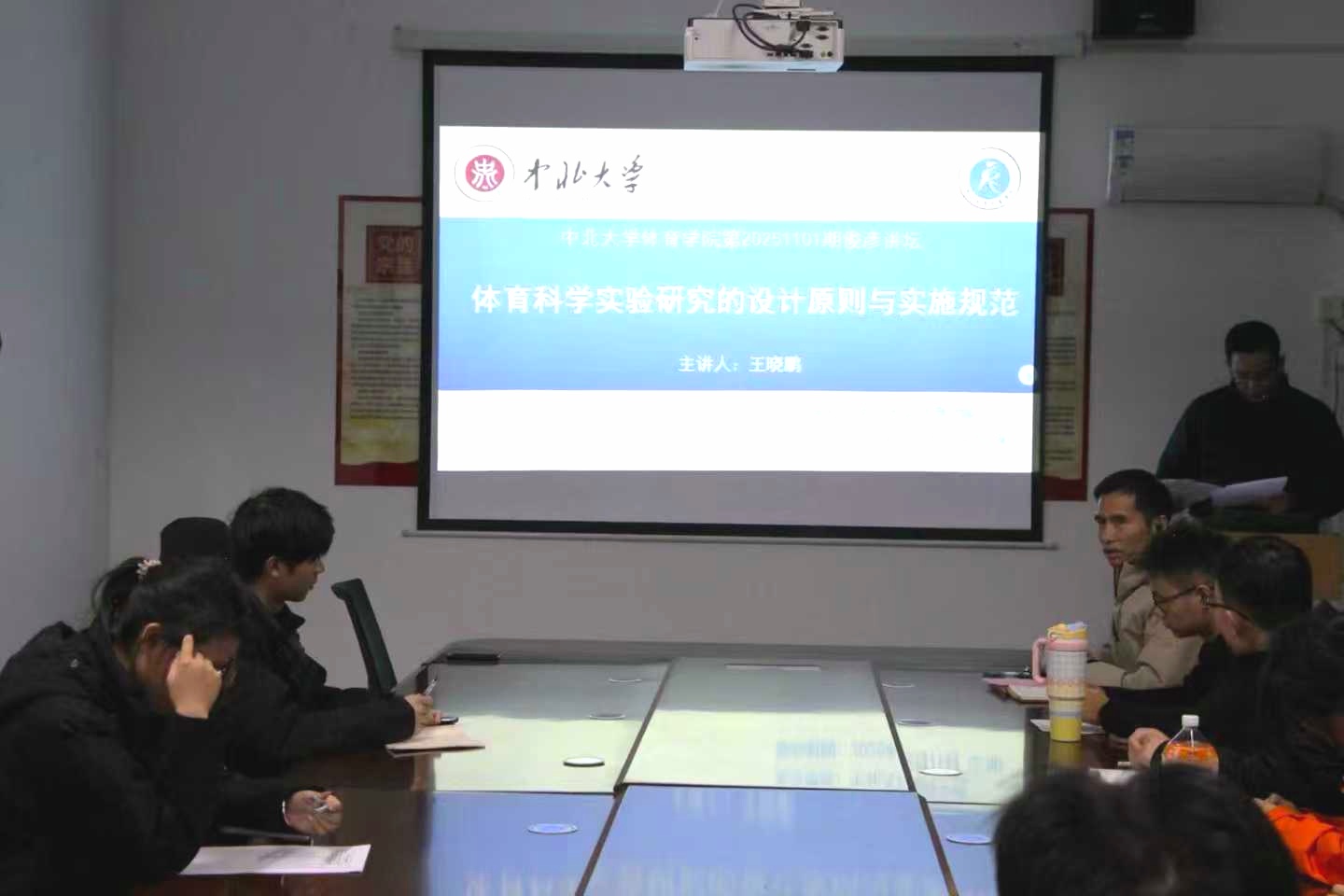 科研科科长牛会康主持,邀请体育教育训练学专业王晓鹏老师担任主讲,围绕“体育科学实验研究的设计原则与实施规范”这一主题展开深度分享。在校研究生积极参与,共同聆听了讲座。