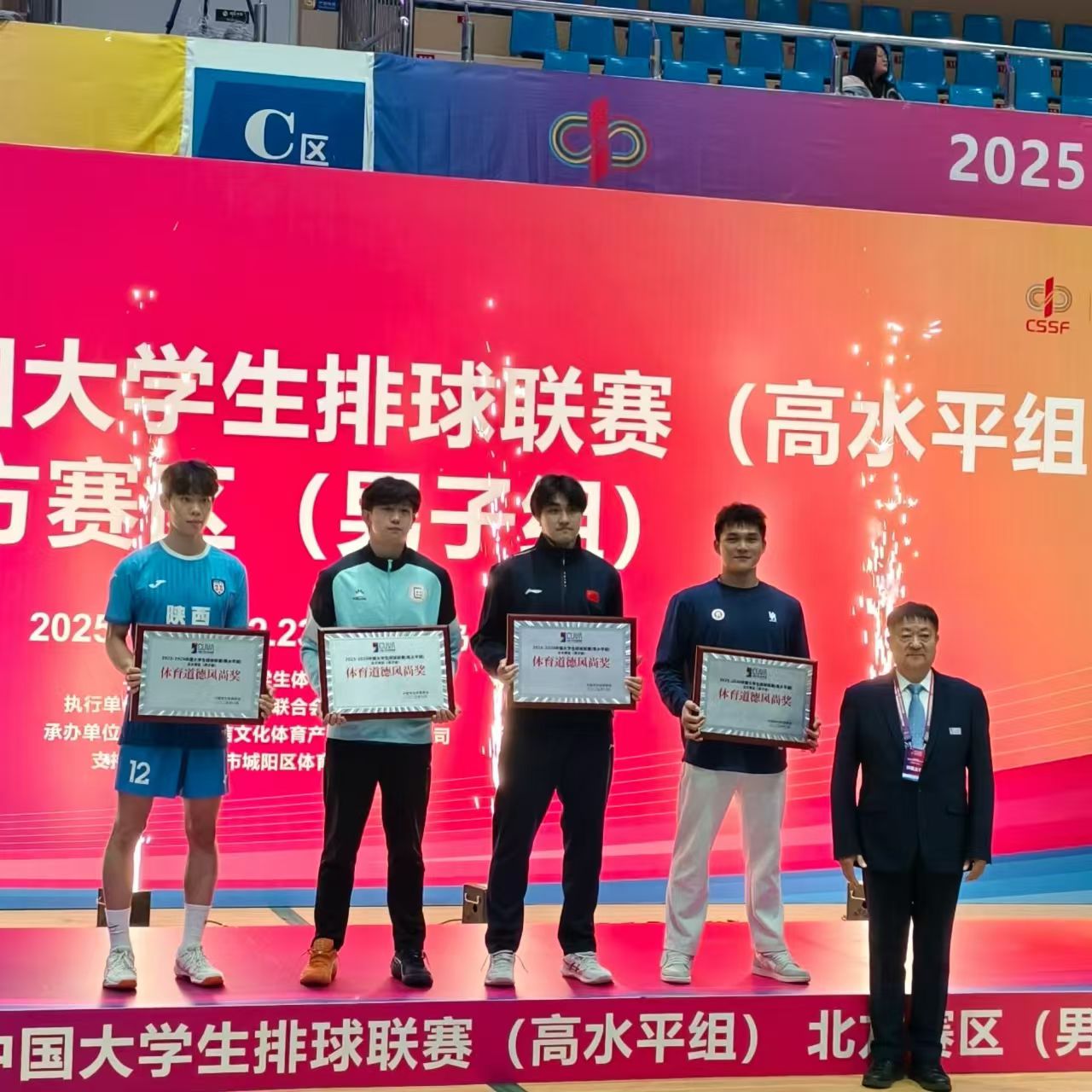 在2025年12月22日落幕的2025-2026中国大学生排球联赛(高水平组)北方赛区(男子组)赛事中,我校男子排球队以8胜1负的总成绩斩获第五名。球队在小组赛阶段保持全胜战绩,充分彰显了队伍过硬的竞技水准与强大的团队凝聚力。