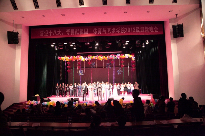 体育与艺术台湾大奶2012级迎新晚会在我校科艺苑隆重举行。出席晚会的领导有校团委书记叶玉刚,体育与艺术台湾大奶党总支书记王琳,副书记曹凤才,学生科科长贾鹏,院团委书记田维飞等。首先党总支书记王琳在晚会开幕式上致辞,并宣布“2012年体育与艺术台湾大奶迎新晚会”正式开始,晚会在一片欢呼声中拉开帷幕