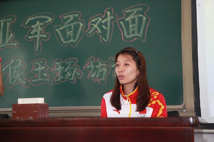 作为一名职业运动员,当站在领奖台上那一刻,身上的荣誉和光芒是那么的耀眼,让人不会想到台下的侯玉琢是那么的恬静随和,此次我校专访侯玉琢,恰逢新生报到的日子,站在主席台一旁安静等待演讲的她,已经是身经百战的一名老将,身上是安静谦逊的气质让我们倍感亲切。