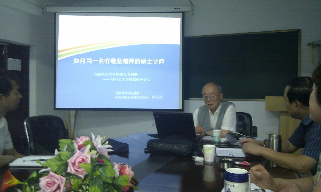 曲宗湖教授在研究生教师为体育专业的硕士生导师做了题为“如何当一名有敬业精神的硕士导师”的学术讲座。