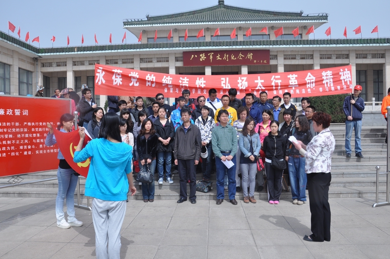 此次太行红色革命圣地之行,大家一起参观了八路军太行革命纪念馆、黄崖洞兵工厂遗址,并在八路军太行革命纪念馆前重温了入党誓词,宣誓仪式由曹凤才主持;宣誓完毕后,院党总支书记王琳老师做了重要讲话,要求全体党员和干部,努力提高自身素质,加强党性修养,确保党的纯洁性和先进性,要以身作则,率先垂范,弘扬和传承太行革命精神。