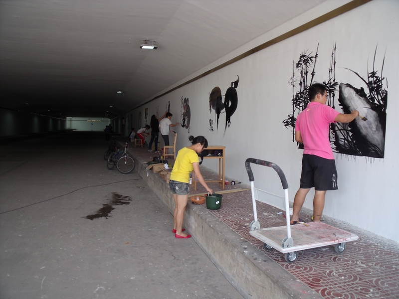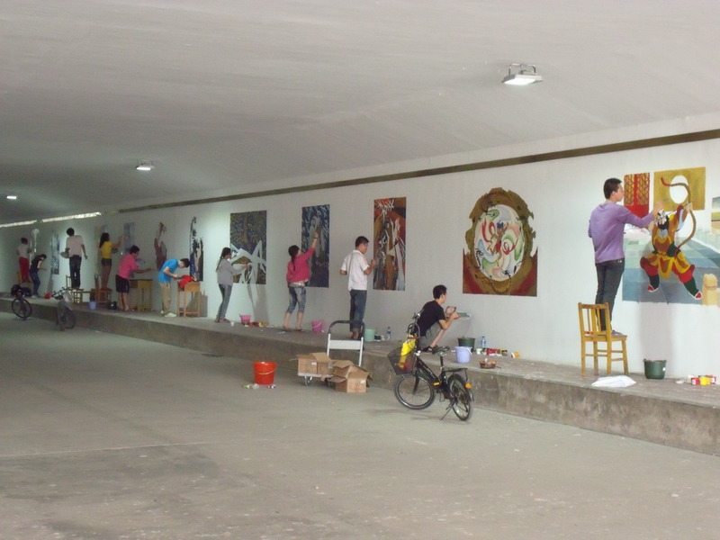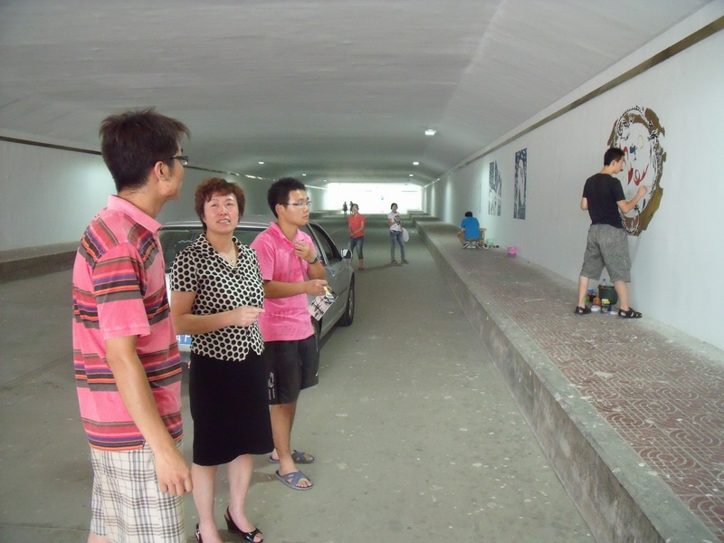 地下通道前来看望正在此处创作壁画的艺术系学生。此次留在学校为台湾大奶