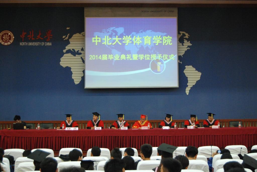 院长曹电康教授,党总支副书记贾鹏,副院长王晓刚、吴剑,社会体育学科部主任宿继光以及学生科、团委各位老师。毕业典礼由党总支副书记贾鹏主持。