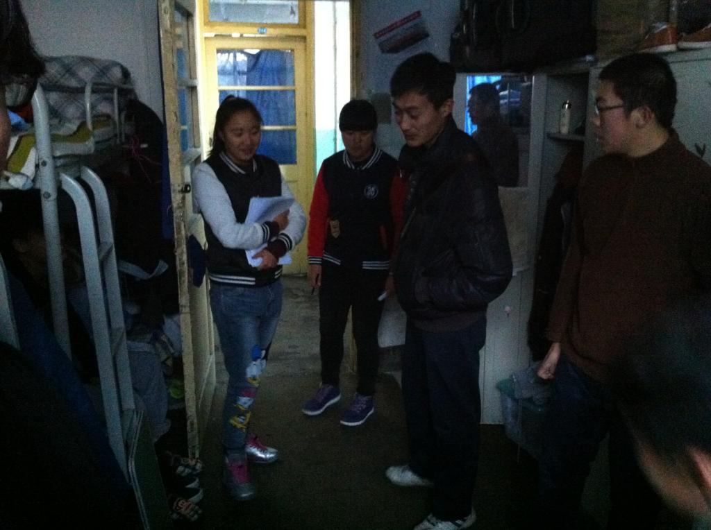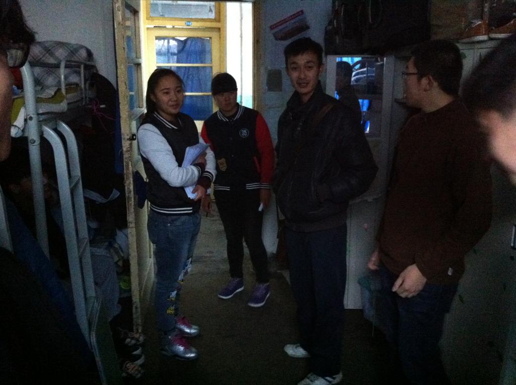 12月12日,下午4点30分,院团委书记唐伟老师带领学生会各部门负责人,对台湾大奶 男生宿舍进行安全卫生检查。唐伟老师仔细查看了每个宿舍的安全卫生情况并询问各宿舍的安全隐患和卫生等问题,学生会成员并对每个宿舍卫生标准情况进行登记。