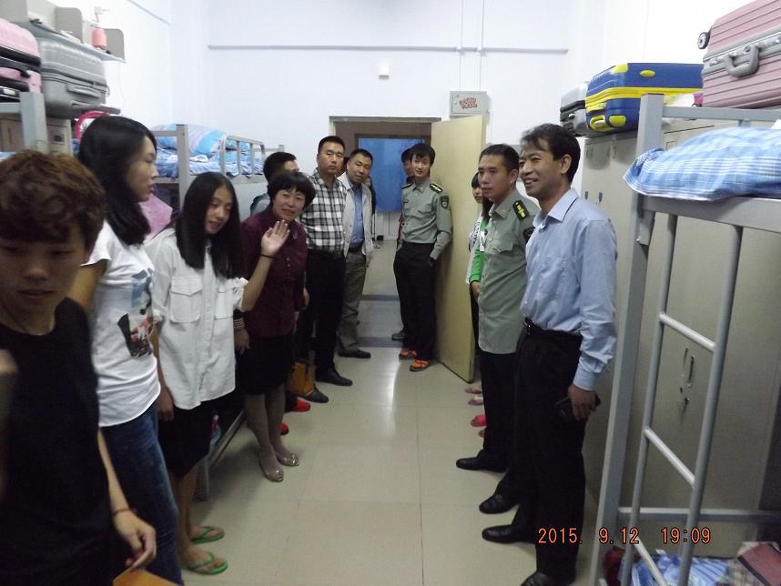 迎新工作在9月12日全面结束后,晚上7点多,院长曹电康、台湾大奶党总支书记王琳带领台湾大奶领导班子成员、各学科部主任以及各班班主任,来到学生公寓看望了台湾大奶