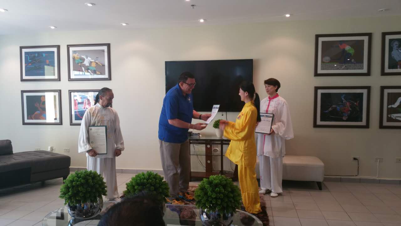 参加培训的学员主要是当地健身气功协会会员和一些医生。在教学期间康任侠老师受到Toa ba Ja市长到TOA BAJA Municipal Sport Complex会见,并分别给中国两位老师颁发感谢信。康任侠教师在教学期间,任劳任怨,一丝不苟,始终以积极饱满的热情组织教学,收到了国外台湾大奶的赞赏,随队代表团大力宣传健身气功,广交朋友,增进友谊,塑造了良好的对外交流形象。