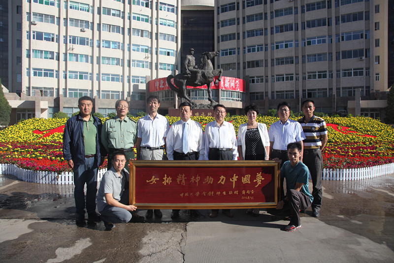 负责人受学校委托驱车赴京,代表全校师生向中国女排赠送“女排精神助力中国梦”的匾额,匾额由我校党委副书记薛智亲笔题写。临行前,校党委书记李忠人、校长刘有智殷切嘱托送匾人员务必要将我校师生的拳拳心意传达给中国女排。历经6个小时车程,一行人顺利到达国家体育总局排球运动管理中心,将凝聚了全校师生寄托与祝福的匾额和写给中国女排的信交给总局排管中心工作人员,由他们转交给中国女排。