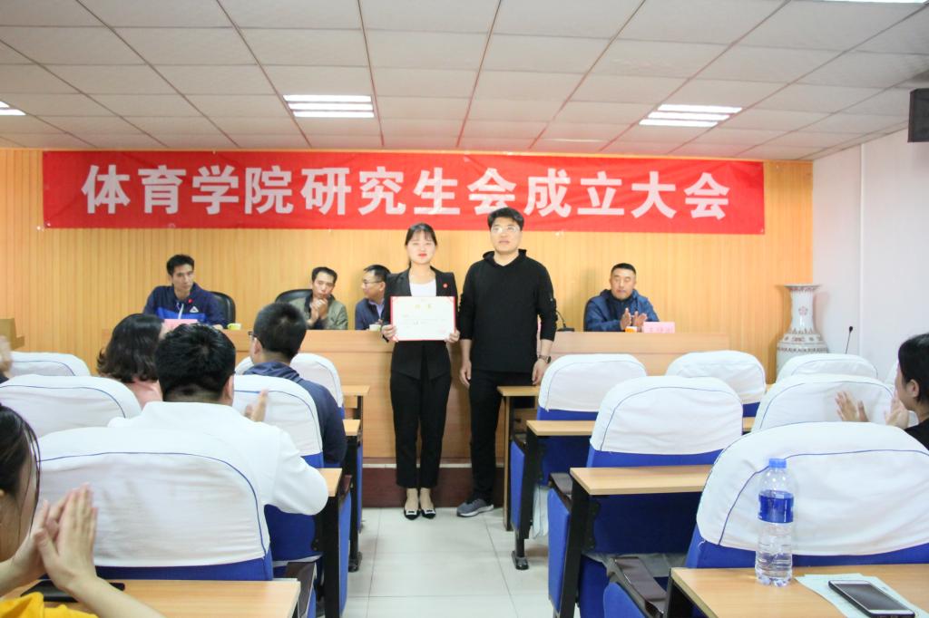 副院长王晓刚宣读第一届研究生会干部名单,研究生院党委副书记崔亚为研究生会主席团、各部长颁发聘书。