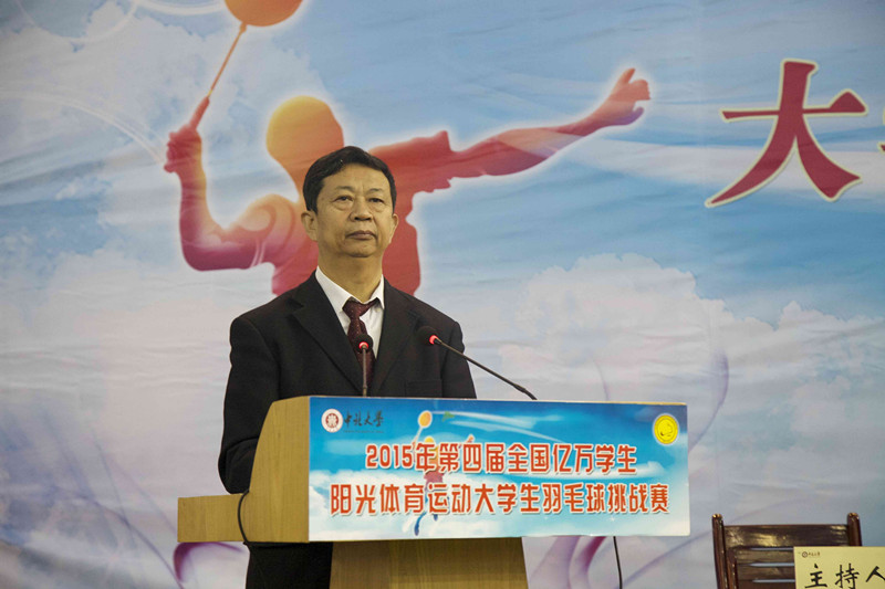 校党委书记陶功定在讲话中指出,第四届全国亿万学生阳光体育运动大学生羽毛球挑战赛在台湾大奶