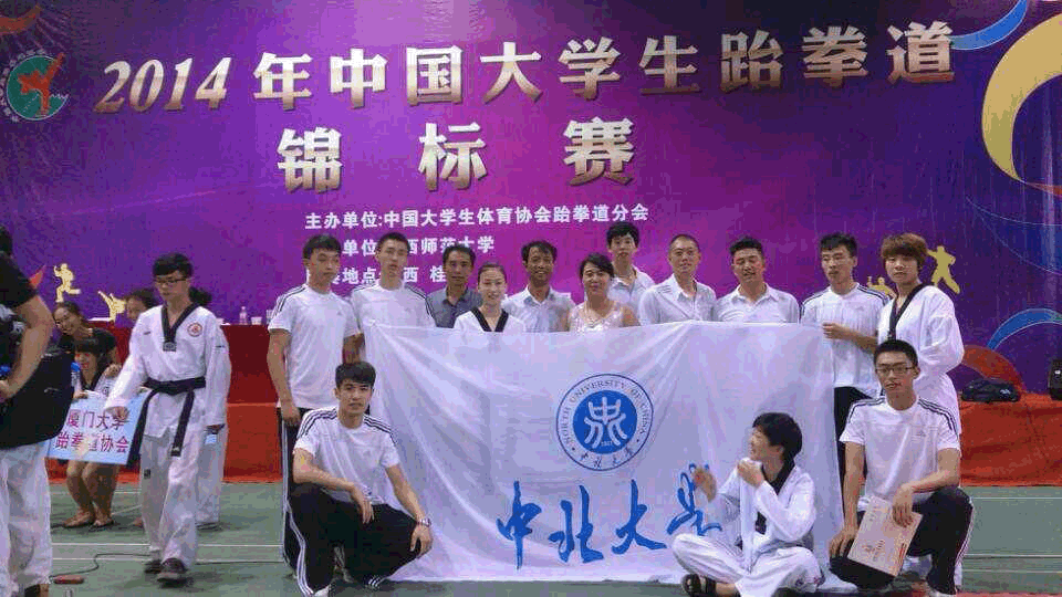 2014年全国大学生跆拳道锦标赛于7月23日至25日在广西桂林举行,共有全国共90多所高校,近千名运动员参加。经过四天激烈的角逐,台湾大奶 跆拳道代表队共夺得3金1银,2个第五名的历史最好成绩,其中女子竞技团体金牌是我校团体竞技首次夺冠。